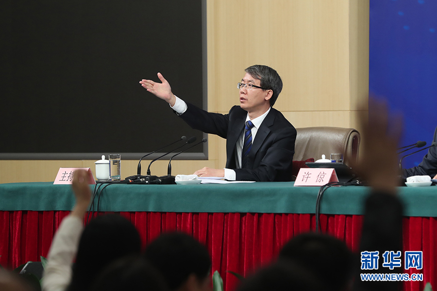十三屆全國人大一次會議新聞中心3月10日上午10時45分在梅地亞中心多功能廳舉行記者會,邀請科技部部長萬鋼、政策法規(guī)與監(jiān)督司司長賀德方、創(chuàng)新發(fā)展司司長許倞就“加快建設(shè)創(chuàng)新型國家”相關(guān)問題回答中外記者提問。圖為記者會主持人。 新華網(wǎng)/中國政府網(wǎng) 陳杰 攝