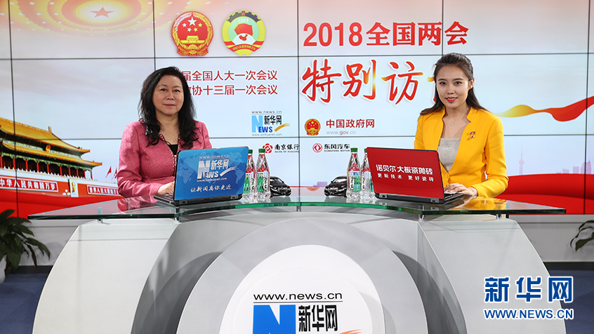 圖為全國政協(xié)委員、新大陸科技集團(tuán)總裁王晶做客新華網(wǎng)2018全國兩會(huì)特別訪談 新華網(wǎng)郭小天攝
