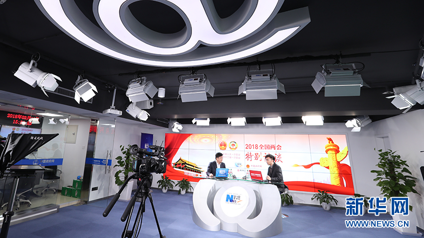 3月11日,全國(guó)政協(xié)委員、中國(guó)人民大學(xué)校長(zhǎng)劉偉(左)做客新華網(wǎng)2018全國(guó)兩會(huì)特別訪談。新華網(wǎng) 郭小天攝