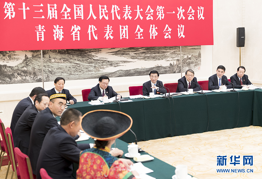 王滬寧在青海代表團(tuán)參加審議。在聽(tīng)取王國(guó)生、王建軍、張曉容等代表發(fā)言后,王滬寧表示,完全贊成張德江委員長(zhǎng)所作的全國(guó)人大常委會(huì)工作報(bào)告。希望青海深入學(xué)習(xí)貫徹習(xí)近平新時(shí)代中國(guó)特色社會(huì)主義思想和黨的十九大精神,在學(xué)懂弄通做實(shí)上下功夫,引導(dǎo)干部群眾增強(qiáng)“四個(gè)意識(shí)”,堅(jiān)決維護(hù)習(xí)近平總書(shū)記核心地位、維護(hù)黨中央權(quán)威和集中統(tǒng)一領(lǐng)導(dǎo)。要聚焦實(shí)現(xiàn)高質(zhì)量發(fā)展,加快傳統(tǒng)產(chǎn)業(yè)優(yōu)化升級(jí),大力發(fā)展特色新興產(chǎn)業(yè),打好生態(tài)保護(hù)、綠色發(fā)展兩張牌,打造青海發(fā)展新的增長(zhǎng)點(diǎn)。要提高保障和改善民生水平,打好精準(zhǔn)脫貧攻堅(jiān)戰(zhàn),做好民族團(tuán)結(jié)進(jìn)步工作,增強(qiáng)各族群眾的獲得感、幸福感、安全感。要認(rèn)真貫徹新時(shí)代黨的建設(shè)總要求,全面加強(qiáng)黨的領(lǐng)導(dǎo)和黨的建設(shè)。