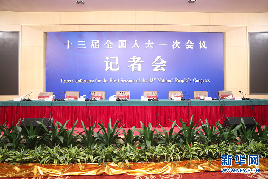 3月12日,十三屆全國(guó)人大一次會(huì)議新聞中心在梅地亞中心多功能廳舉行記者會(huì),邀請(qǐng)十二屆全國(guó)人大內(nèi)司委副主任委員王勝明、財(cái)經(jīng)委副主任委員烏日?qǐng)D、教科文衛(wèi)委副主任委員吳恒、環(huán)資委委員呂彩霞,全國(guó)人大常委會(huì)法工委副主任王超英、副主任許安標(biāo)就“人大立法工作”相關(guān)問(wèn)題回答中外記者提問(wèn)。圖為記者會(huì)開(kāi)始前。新華網(wǎng)/中國(guó)政府網(wǎng) 翟子赫 攝