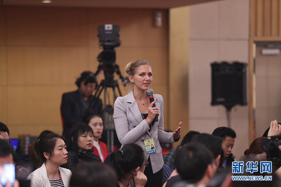 3月12日,十三屆全國人大一次會議新聞中心在梅地亞中心多功能廳舉行記者會,邀請十二屆全國人大內(nèi)司委副主任委員王勝明、財經(jīng)委副主任委員烏日圖、教科文衛(wèi)委副主任委員吳恒、環(huán)資委委員呂彩霞,全國人大常委會法工委副主任王超英、副主任許安標(biāo)就“人大立法工作”相關(guān)問題回答中外記者提問。圖為香港衛(wèi)視記者提問。新華網(wǎng)/中國政府網(wǎng) 翟子赫 攝