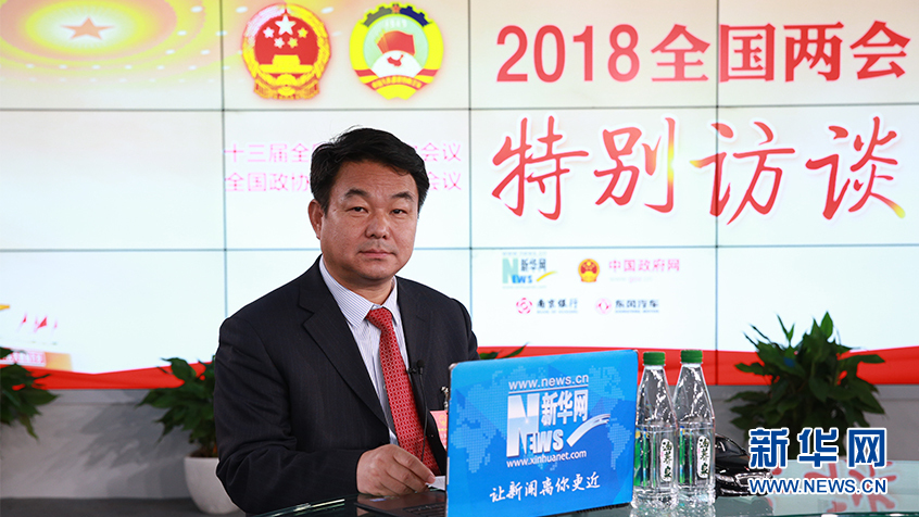 全國(guó)人大代表、江蘇百斯特投資集團(tuán)有限公司董事長(zhǎng)王強(qiáng)眾做客新華網(wǎng)2018全國(guó)兩會(huì)特別訪談 新華網(wǎng) 楊锘攝
