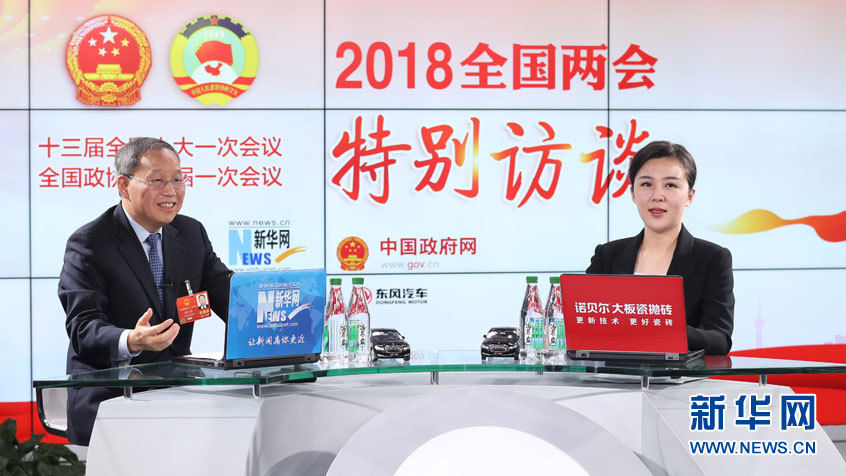 圖為15日,全國人大代表、重慶小康工業(yè)集團(tuán)股份有限公司董事長張興海做客新華網(wǎng)2018全國兩會特別訪談。新華網(wǎng) 郭小天攝