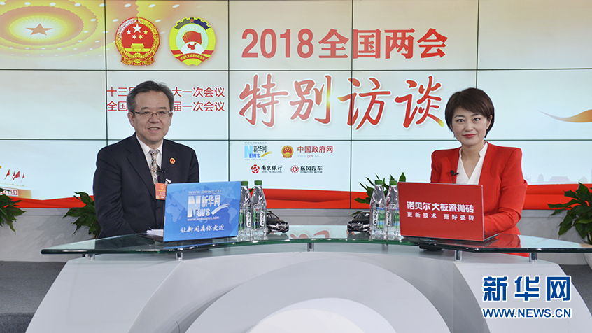 圖為15日,全國(guó)人大代表、酒泉市委書記吳仰東做客新華網(wǎng)2018全國(guó)兩會(huì)特別訪談。新華網(wǎng) 李相博攝
