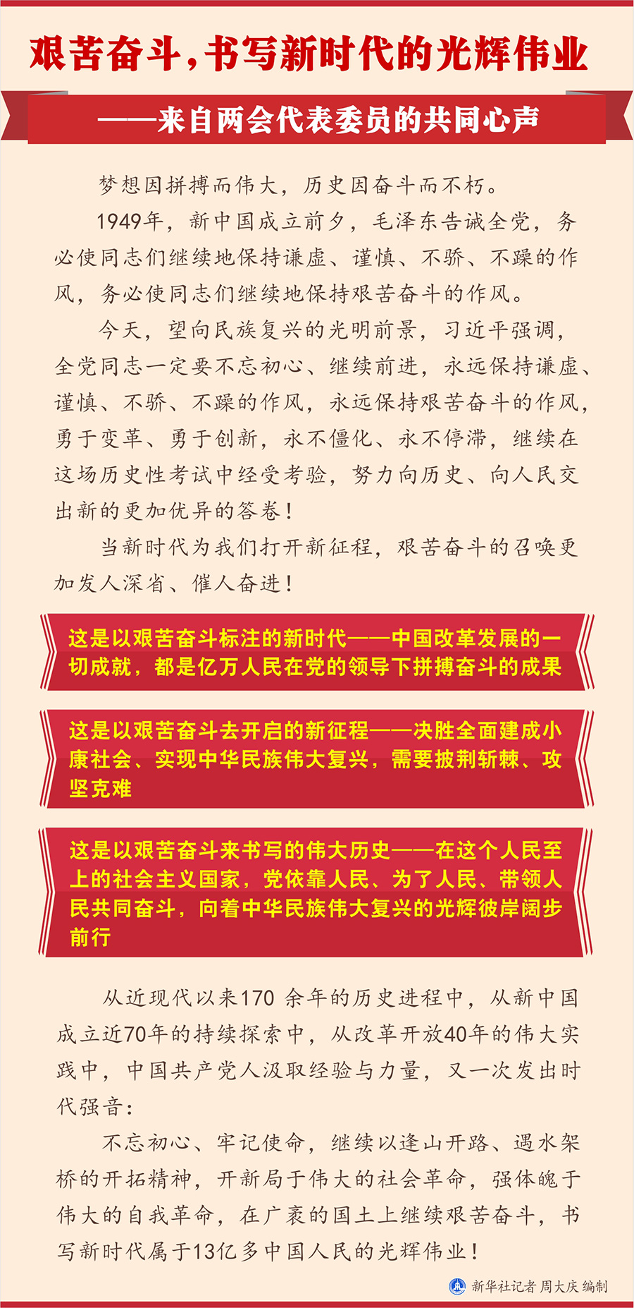 圖表:艱苦奮斗,書(shū)寫(xiě)新時(shí)代的光輝偉業(yè)——來(lái)自兩會(huì)代表委員的共同心聲