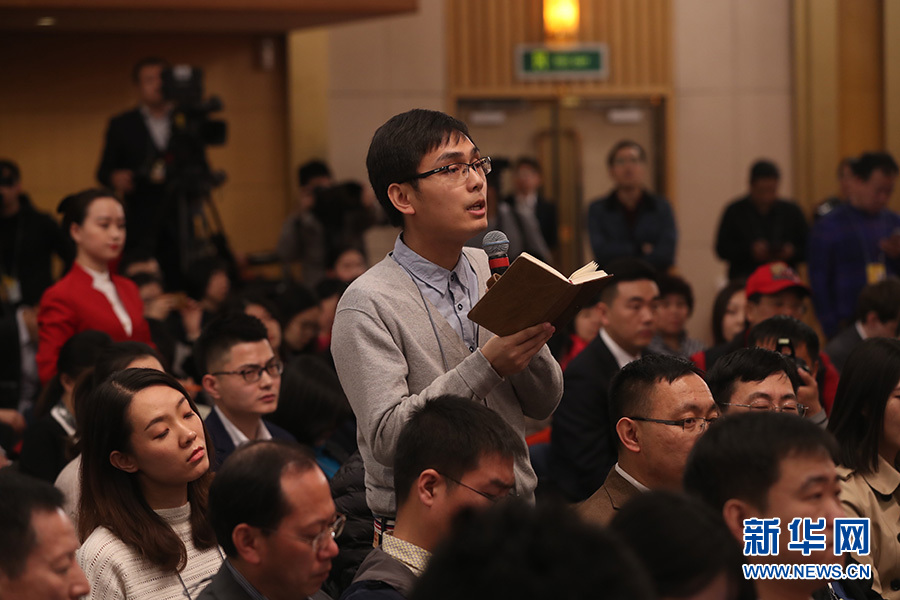 十三屆全國人大一次會(huì)議新聞中心于3月16日10時(shí)在梅地亞中心多功能廳舉行記者會(huì),邀請(qǐng)教育部部長陳寶生就“努力讓每個(gè)孩子都能享有公平而有質(zhì)量的教育”相關(guān)問題回答中外記者提問。圖為光明日?qǐng)?bào)融媒體記者提問。新華網(wǎng)/中國政府網(wǎng) 曲植 攝