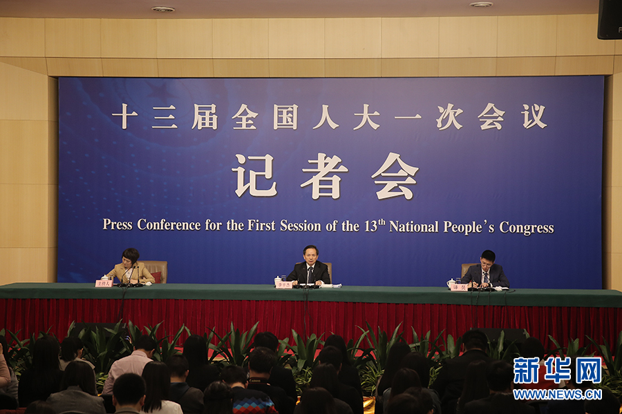 十三屆全國人大一次會議新聞中心于3月17日15時在梅地亞中心多功能廳舉行記者會,邀請環(huán)保部部長李干杰就“打好污染防治攻堅(jiān)戰(zhàn)”相關(guān)問題回答中外記者提問。圖為記者會現(xiàn)場。新華網(wǎng)/中國政府網(wǎng) 陳杰 攝