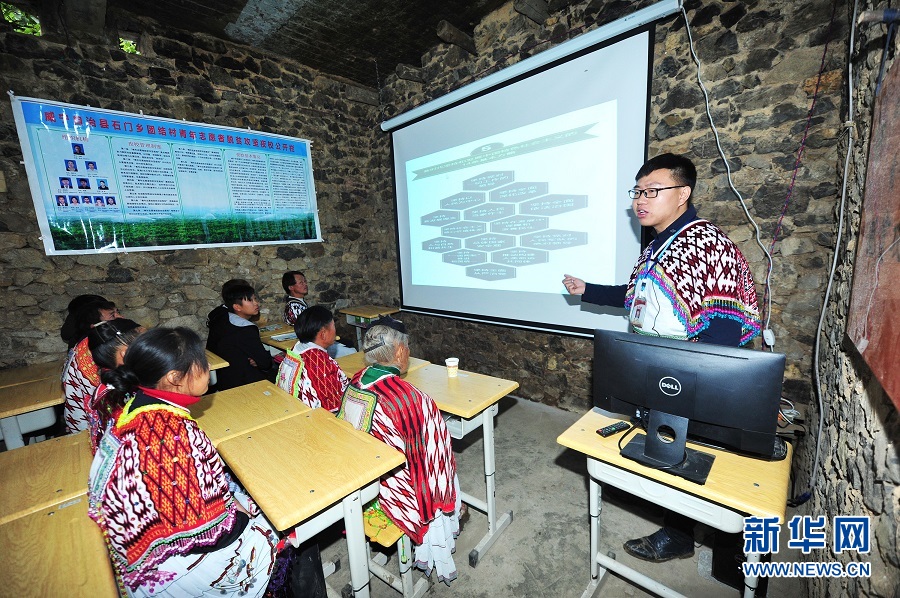 在貴州省畢節(jié)市威寧彝族回族苗族自治縣石門鄉(xiāng)團結(jié)村七里沖組脫貧攻堅講習(xí)點,村支書胡鈞溥在向當(dāng)?shù)厝罕娭v解十九大精神及相關(guān)的扶貧政策(2017年10月23日攝)。逐夢征程,需要價值追求的引領(lǐng)和精神力量的支撐。 “社會主義核心價值觀決定著各民族共有精神家園的發(fā)展方向,必須在各民族中大力培育和踐行”“以社會主義核心價值觀為引領(lǐng),深入挖掘優(yōu)秀傳統(tǒng)農(nóng)耕文化蘊含的思想觀念、人文精神、道德規(guī)范”“引導(dǎo)全社會積極培育和踐行社會主義核心價值觀,樹立良好道德風(fēng)尚”……今年全國兩會期間,習(xí)近平總書記多次強調(diào)培育和踐行社會主義核心價值觀。兩會上,社會主義核心價值觀被寫入國家根本大法。浩渺行無極,揚帆但信風(fēng)。兩會結(jié)束后,代表委員們奔赴大江南北,與各地干部群眾一起,以實際行動推動社會主義核心價值觀建設(shè)落細落小落實,持續(xù)構(gòu)筑中國精神、中國價值、中國力量,為劈波斬浪的“中國號”巨輪揚起團結(jié)奮進的精神風(fēng)帆。新華社記者 陶亮 攝