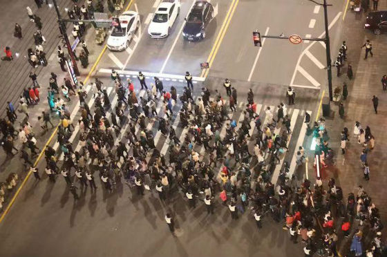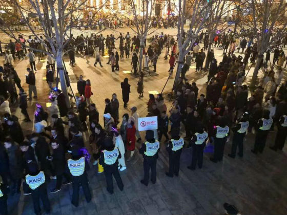 下午15時許,黃浦公安分局民警和增援安保工作的學(xué)警和武警共8600余名安保力量就已全部到崗,按照事先部署的安保方案嚴陣以待。此時,南京東路往外灘的游客開始聚集,警方在南京東路四川中路口、南京東路江西中路口實施交通管制,禁止機動車輛通行。民警在現(xiàn)場放置了繞行提示版,提醒車輛繞行河南路,非機動車輛繞行山東中路或山西中路。南京東路外灘、南京東路河南中路路口也沿用了保護行人過馬路安全的“人墻”——紅燈時攔住路口、綠燈時散開在兩邊攔截車流護送人群過街的“開關(guān)式”過馬路措施。