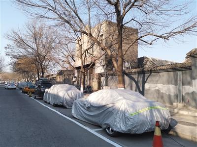 昨日,西興隆街,跨位停車加罩車衣占用路側(cè)停車位。