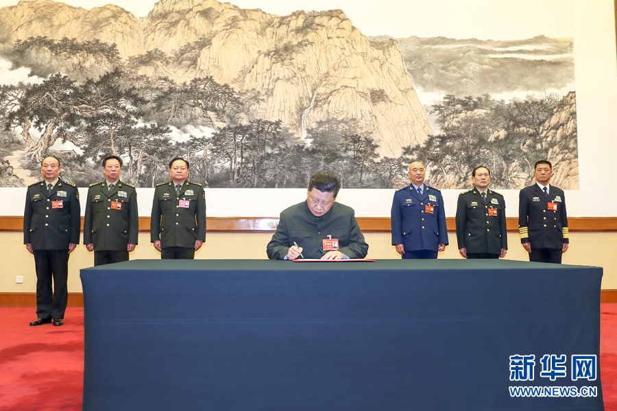 1月4日,中央軍委軍事工作會議在北京召開。中共中央總書記、國家主席、中央軍委主席習(xí)近平出席會議并發(fā)表重要講話。這是習(xí)近平簽署中央軍委2019年1號命令,向全軍發(fā)布開訓(xùn)動員令。 新華社記者 李剛 攝