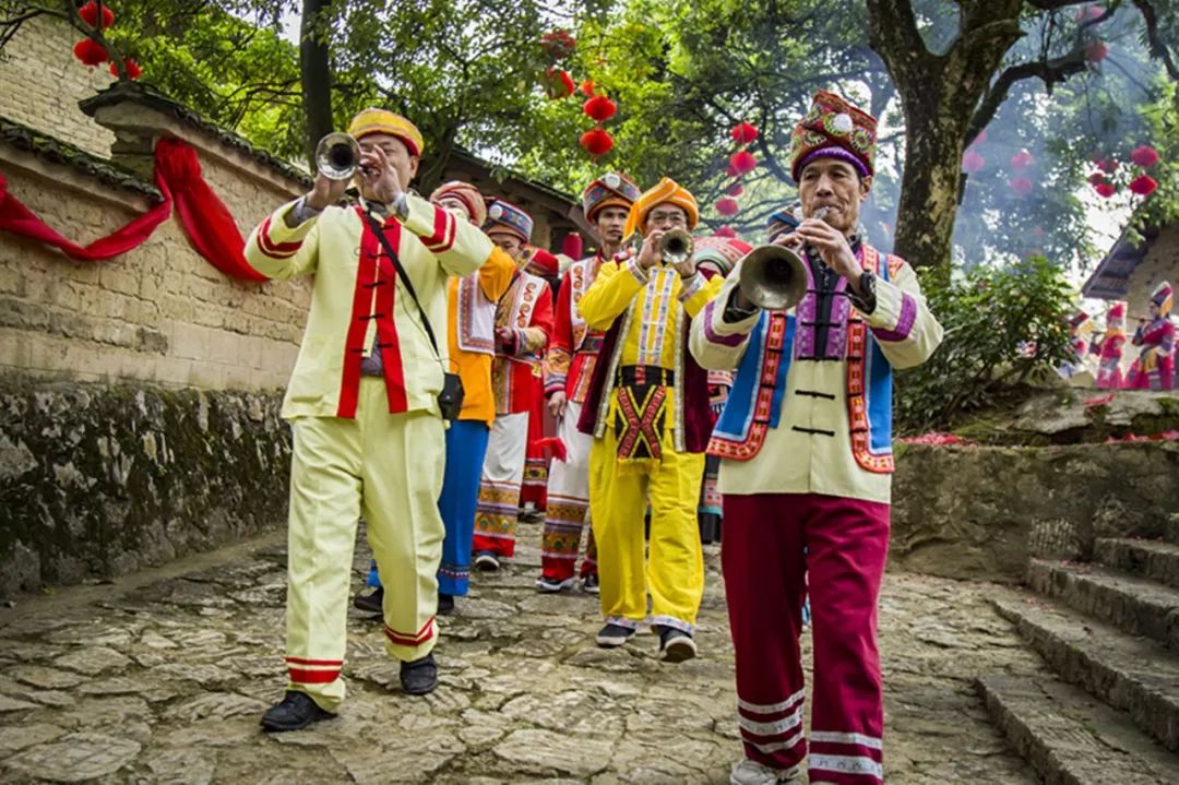 2018-12-29,廣西宜州流河寨。壯鄉(xiāng)傳統婚禮里的吹嗩吶。作者:藍景惠