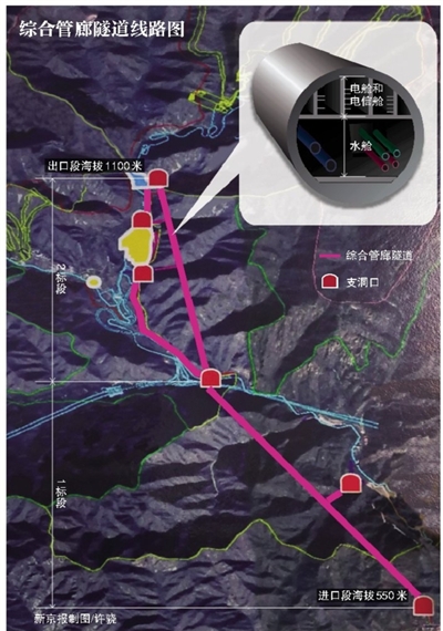 怎樣把對(duì)生態(tài)環(huán)境的影響降到最低是施工隊(duì)面臨的另一項(xiàng)考驗(yàn)。在施工方案的選擇上,設(shè)計(jì)團(tuán)隊(duì)曾想過(guò)另外一種建設(shè)方案,但最終被否定。“最初的方案是在山坡上做溝渠,從山下把水運(yùn)送到山上,但這種方法只能用來(lái)運(yùn)水,而且要砍伐大量樹(shù)木,生態(tài)破壞嚴(yán)重?!?韓寶江說(shuō),采用地下綜合管廊的建設(shè)方式,不但可以同時(shí)輸送電力和水,而且伐樹(shù)少,占地面積小,能夠最大程度保護(hù)山體生態(tài)環(huán)境。為減少對(duì)野生動(dòng)物生活習(xí)性的影響,施工隊(duì)在爆破時(shí)也盡可能在白天進(jìn)行。