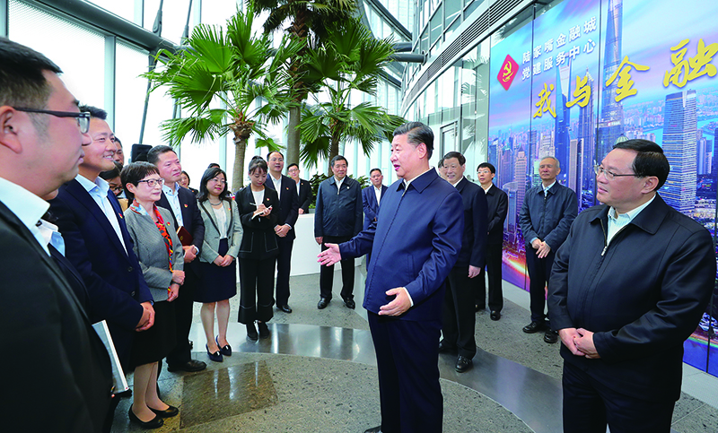 2018年11月6日至7日,中共中央總書記、國家主席、中央軍委主席習近平在上??疾?。這是6日上午,習近平在上海中心大廈22層的陸家嘴金融城黨建服務中心,同正在聯(lián)合開展主題黨日活動的企業(yè)黨員親切交談。 新華社記者 謝環(huán)馳/攝