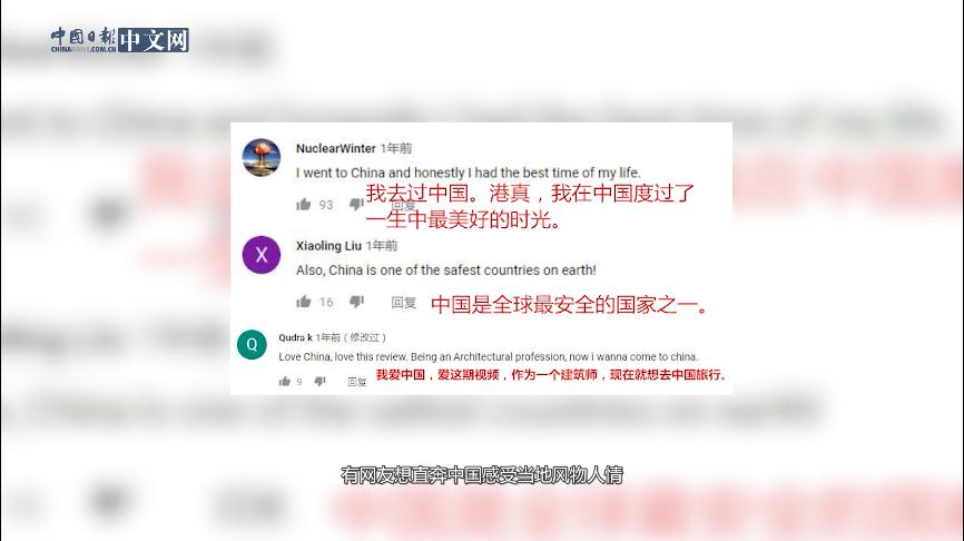2018年12月23日,旅游博主“Travellight”在YouTube發(fā)布題為“我太想念中國(guó)”的視頻,該視頻點(diǎn)擊量高達(dá)12.1萬次。她在視頻中表示,剛剛離開中國(guó)幾個(gè)月,就迫不及待地想回來。