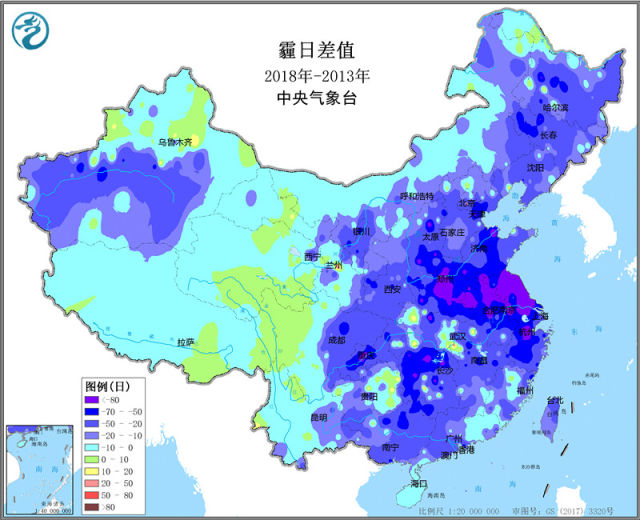 根據(jù)中央氣象臺(tái)的統(tǒng)計(jì),全國(guó)大部分地區(qū)2018年霾日較2013年都有大幅下降,其中京津冀及周邊大部分地區(qū)霾日數(shù)下降超過(guò)30天,部分地區(qū)下降超過(guò)50天;長(zhǎng)三角地區(qū)霾日數(shù)下降普遍超過(guò)50天;珠三角地區(qū)霾日數(shù)也出現(xiàn)明顯下降,部分地區(qū)下降超過(guò)30天;汾渭平原霾日數(shù)下降普遍超過(guò)20天;川渝地區(qū)霾日數(shù)普遍下降超過(guò)20天。