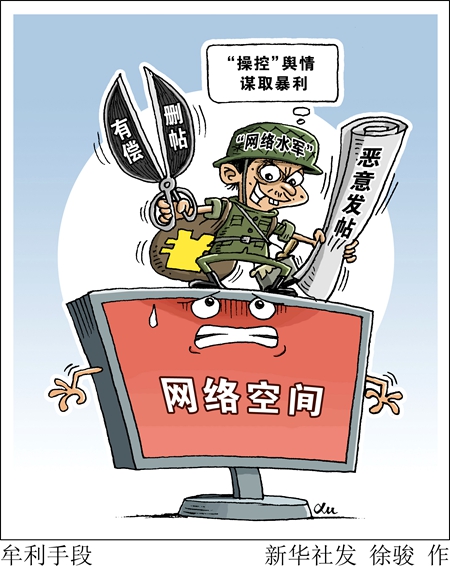 湖北、福建等地警方近日相繼破獲“網絡水軍”團伙犯罪案件,揭開了“網絡水軍”非法經營的手法和套路?!靶氯A視點”記者調查發(fā)現,“網絡水軍”明碼標價,通過刪帖、發(fā)帖,有的用幾十萬元就能“操控”輿情。