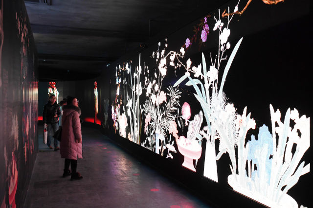 這是1月21日拍攝的數(shù)字沉浸體驗展“花開歲朝”部分。