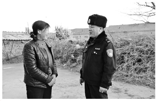 小蒜溝站鐵路沿線村莊較多,村民大都有家養(yǎng)牲畜,巡線之余,民警們還要走街串巷,向村民們宣傳鐵路安全知識(shí)。“二大娘,今天又來到咱們家了,還是那個(gè)事,主要跟您說一下咱們家里養(yǎng)的牛,養(yǎng)的羊,一定不要去鐵路兩側(cè)放。知道吧,你忘了去年咱們簽的協(xié)議,所以說這事吧,咱們的鐵路安全很重要,一旦咱們?nèi)ツ欠叛蚍排?火車把咱牛羊撞了,咱們自己受損失?!庇捎诔D暄策壯簿€入村宣傳,民警和沿線村民都熟悉了,宣傳起來像是在嘮家常。