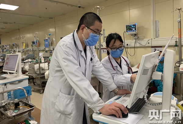 1月29日,剛上班的武軍元,第一件事就是到搶救室查看病人病情。(央廣記者 孫冰潔 攝)