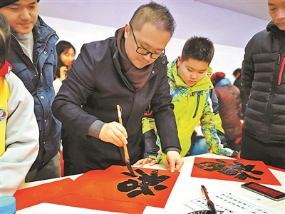 今年春節(jié),平谷區(qū)百名書(shū)法家組成的團(tuán)隊(duì)和一眾書(shū)法愛(ài)好者,通宵達(dá)旦徹夜趕寫(xiě)30萬(wàn)幅“?!弊趾痛郝?lián),并走街串巷免費(fèi)送“?!保尦錆M書(shū)法溫度的春聯(lián)回歸,讓文化真正惠民。