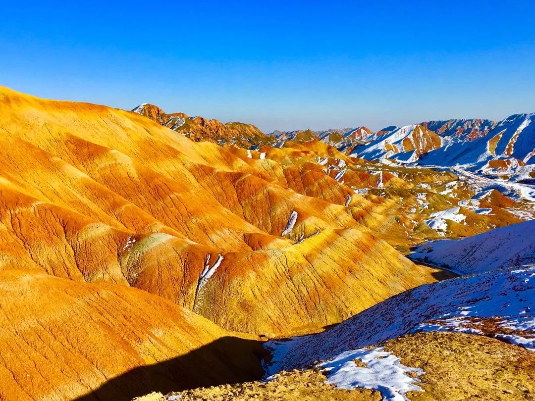 2019-01-31,甘肅張掖。甘肅張掖丹霞景區(qū)又降瑞雪,夏日色彩斑斕的丹霞,雪后變得更加如詩如畫,如夢(mèng)如幻。作者 :朝陽