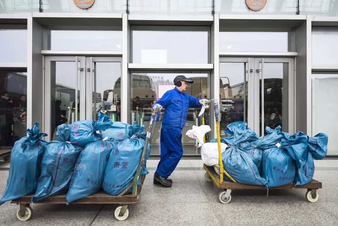 2019-02-01,江蘇省常州市。春運(yùn)大軍中,客運(yùn)站的貨物托運(yùn)工正在托運(yùn)貨物裝車。只見他驅(qū)動兩個(gè)小拖車同時(shí)行動,一下子運(yùn)走了十幾個(gè)包裹。作者:全無敵