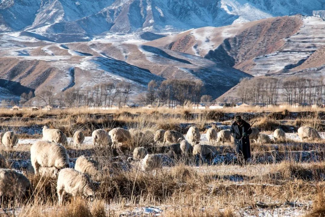 2018-12-22,甘肅省張掖市民樂縣。冬日里一片蒼茫,在寒風(fēng)中,一個牧羊人正在守望著他的羊群。作者:清風(fēng)撫柳
