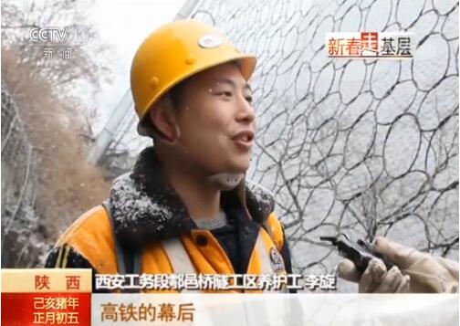 掃山小組 李旋:高鐵的幕后,還有好多像我們這樣(默默無聞)的人,看著這一條(西成高鐵)線,源源(不斷)地輸送著旅客,春節(jié)一趟接著一趟,其實(shí)想想這背后也有我的一份功勞。