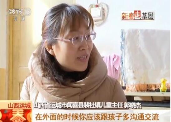 我國從2016年開始對全國留守兒童進(jìn)行摸底調(diào)查,繼而開始推動(dòng)基層兒童工作隊(duì)伍建設(shè),目前全國已經(jīng)有62.5萬名村居兒童主任,在兜底保障近700萬留守兒童的生活。春節(jié)前,新春走基層的記者來到山西省運(yùn)城市聞喜縣,這里是我國最早設(shè)立兒童主任的試點(diǎn)地區(qū),郭曉杰就是一位守護(hù)100多名留守兒童的村居兒童主任。