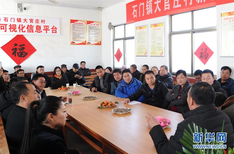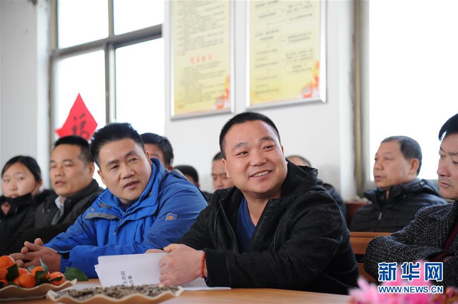 在臨沭縣大官莊村村民茶話會現(xiàn)場,歸鄉(xiāng)人員和村干部共同探討未來致富發(fā)展思路(2月7日攝)。新華社記者 袁軍寶 攝
