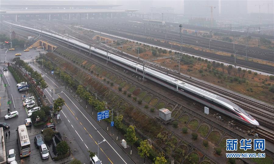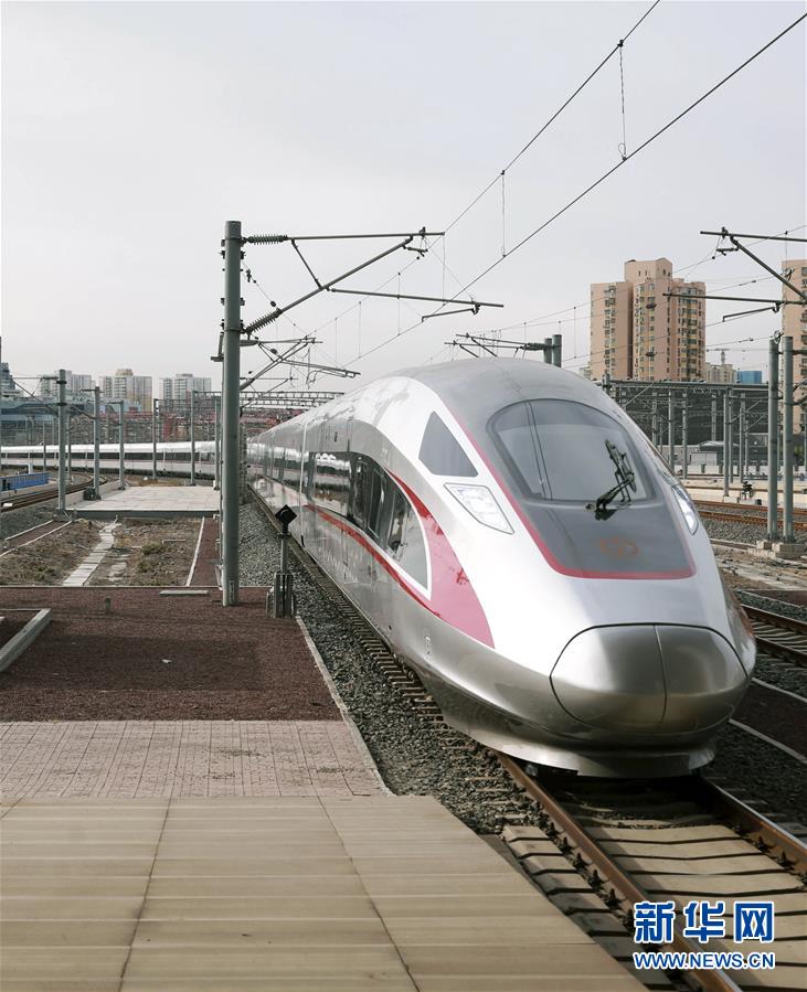 1月5日,超長(zhǎng)版時(shí)速350公里“復(fù)興號(hào)”G9次動(dòng)車組駛?cè)氡本┠险?。新華社發(fā)(陳曉根 攝)