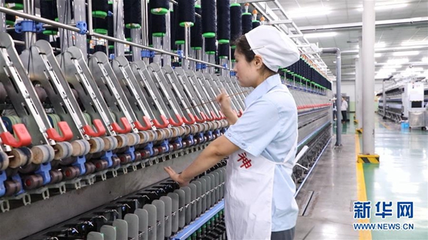 2月18日,在蘭州三毛實(shí)業(yè)股份有限公司紡紗廠,范冬云在進(jìn)行“接線”操作。新華社發(fā)(張智敏 攝)