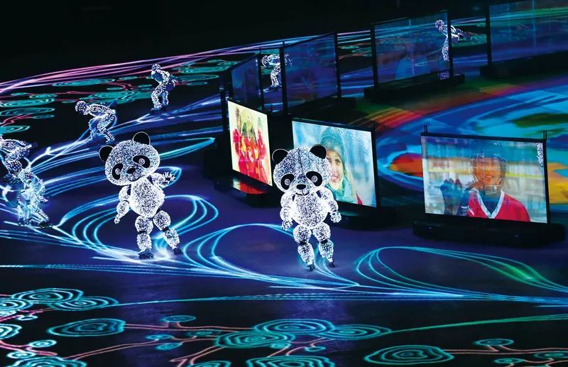 2018年2月25日,在平昌冬奧會閉幕式“北京8分鐘”表演中,由沈陽新松機器人自動化股份有限公司研發(fā)的智能移動機器人與輪滑演員進行表演。 新華社記者 李鋼/攝