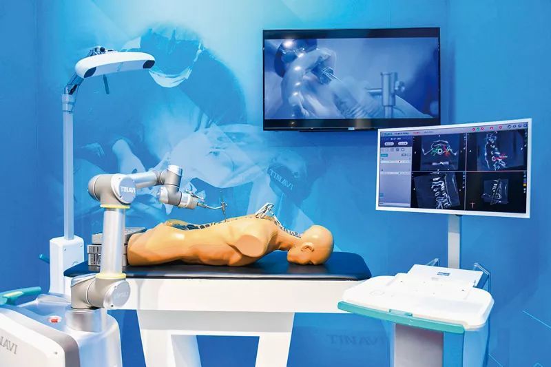 2018年11月22日, 在“偉大的變革——慶祝改革開放40周年大型展覽”上,第三代國產(chǎn)骨科手術(shù)機器人“天璣”正在模擬做手術(shù),它是國際上首個適應癥覆蓋脊柱全節(jié)段和骨盆髖臼手術(shù)的骨科機器人,性能指標達到國際領(lǐng)先水平。 麥田/視覺中國