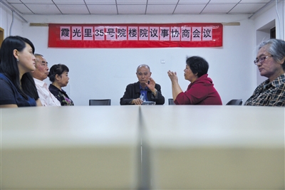 2016年5月,朝陽區(qū)霞光里,居民在居民議事廳討論。資料圖片/新京報記者 王嘉寧 攝