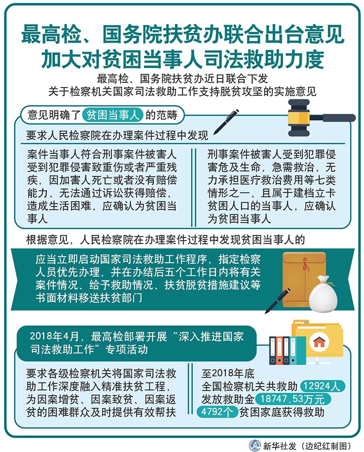 圖表:最高檢、國務院扶貧辦聯合出臺意見 加大對貧困當事人司法救助力度 新華社發(fā) 邊紀紅 制圖