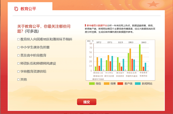 在新華網(wǎng)推出的2019全國兩會(huì)熱點(diǎn)調(diào)查中,教育公平位居榜首,截至目前,關(guān)注度占比9.17%,成為網(wǎng)民兩會(huì)期間最關(guān)心的話題。
