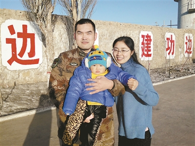指導(dǎo)員楊浩的妻子田茹是在去年除夕夜真正讀懂丈夫的。那天夜里,她陪著丈夫在連隊站崗,頭頂滿天繁星,腳下戈壁遼闊,遠(yuǎn)方煙花絢爛,耳邊爆竹聲聲……“他守著國,我守著他”。