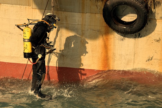 因?yàn)榻?jīng)常要在淤泥里探摸,潛水員在水底的移動(dòng)大多都是“爬”著完成。在韓國(guó)搜尋“世越號(hào)”沉船遇難者遺骨時(shí),潛水員就是爬著,把沉船方圓5海里的海底,每一寸都摸了一遍。