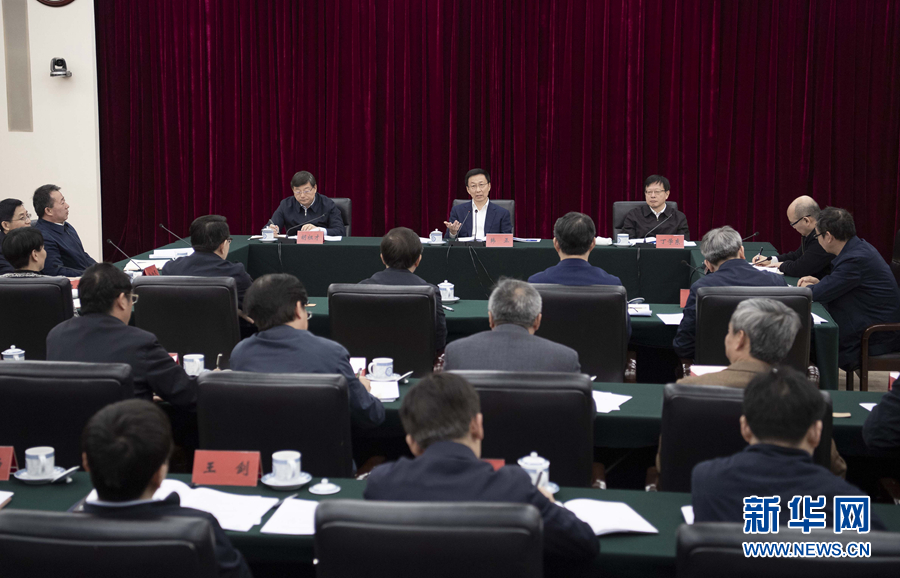 3月22日,中共中央政治局常委、國務院副總理韓正到生態(tài)環(huán)境部調(diào)研并主持召開座談會。 新華社記者 李濤 攝