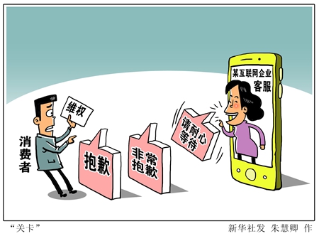 在消費投訴平臺黑貓投訴上,對“客服”的投訴多達8.2萬條。消費者紛紛表示,“磨嘰半天只會說‘抱歉’”“就會打太極反復說盡快處理”“用溫柔的態(tài)度推三阻四”……值得一提的是,這些投訴集中于互聯(lián)網(wǎng)消費:投訴排名前十的商家投訴量都在500次以上,且均為互聯(lián)網(wǎng)企業(yè)。