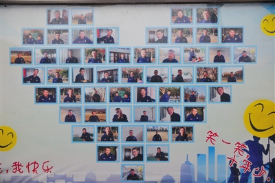 昨日下午,西昌大隊的駐地,一個櫥窗里貼著心形的“笑臉墻”。這當中有26人再也無法返回駐地。