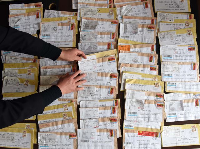 3月20日,張景憲將新一批寫好的信件投到信箱里準(zhǔn)備寄出。