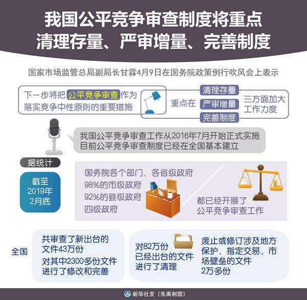 新華社北京4月9日電 題:我國公平競爭審查制度將重點清理存量、嚴審增量、完善制度