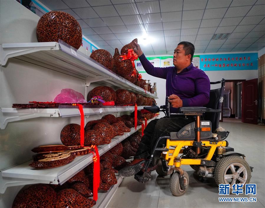 帶領鄉(xiāng)親們用野生核桃殼做工藝品