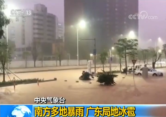 南方多地暴雨 廣東局地冰雹
