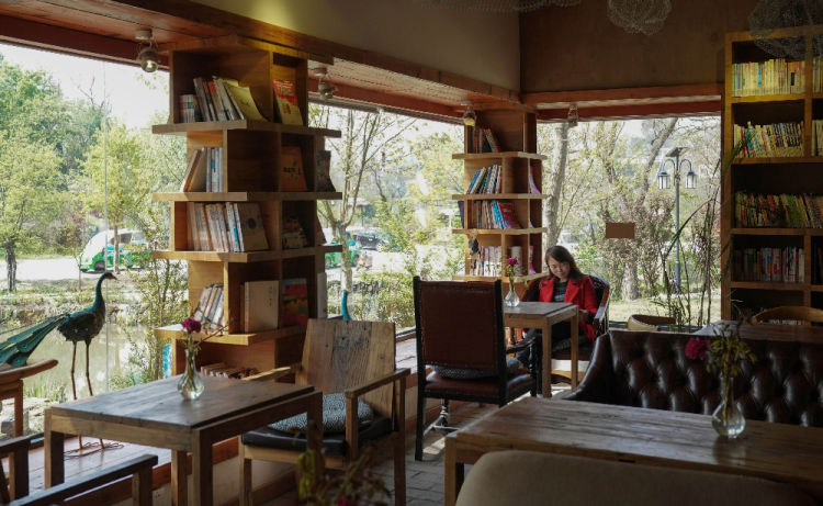 4月12日,一位女士在金嶺村小張灣古建筑群的茶室里休息。湖北省大悟縣金嶺村,5年前還是一個貧窮落后的偏僻山村,通過整合當(dāng)?shù)毓琶窬淤Y源,發(fā)展鄉(xiāng)村游,如今已經(jīng)成為一個生態(tài)宜居的美麗鄉(xiāng)村,2018年接待游客超過20萬人次。新華社記者程敏攝