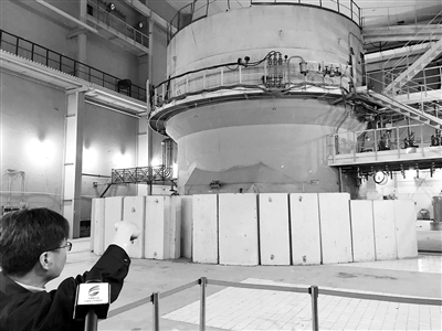 1958年,在蘇聯的幫助下,“一堆一器”建成投運,開啟了中國原子能時代。近日,在參加“壯麗70年·奮斗新時代”活動期間,記者走進中國原子能科學研究院。圖為近日工作人員在我國第一座重水反應堆前講述相關歷史。本報記者 陳瑜 攝